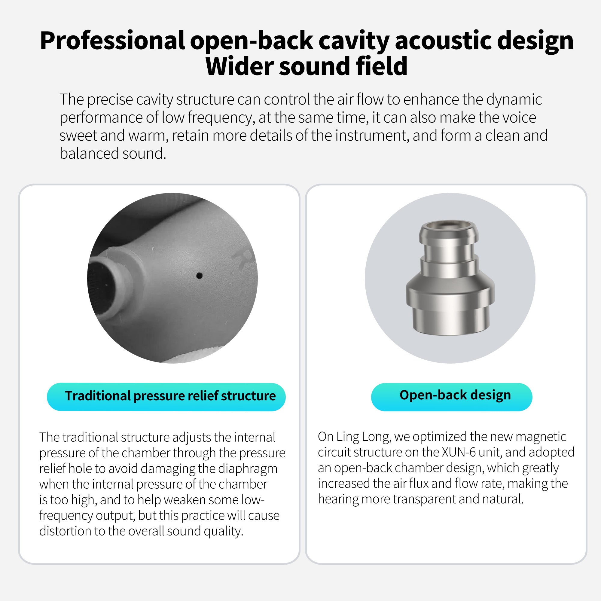 XUN-6 dynamic unit is equipped with a high-order magnetic circuit system that is imitated in the industry. About 0.15MM magnetic gap process, four layers of thickened voice coil, high tension copper aluminum mixed voice coil wire. It lays the foundation for the overall excellent acoustic performance of Ling Long.
